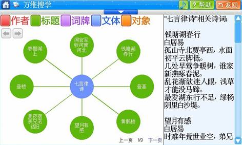 如果按文体学习,菜单下有七言律诗、五言律诗、古体诗、现代诗,还有小令、对联,样样俱全。
